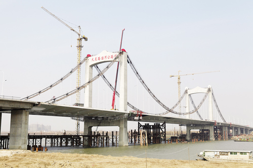 計劃年底通車(chē)的大慶路淮河公路橋,隨著(zhù)昨天下午南接線(xiàn)的瀝青混凝土全部鋪筑完成,主體建設宣告全部結束。進(jìn)入通車(chē)倒計時(shí)前的大橋,正在全面“美容”,等待年底驚艷亮相。
